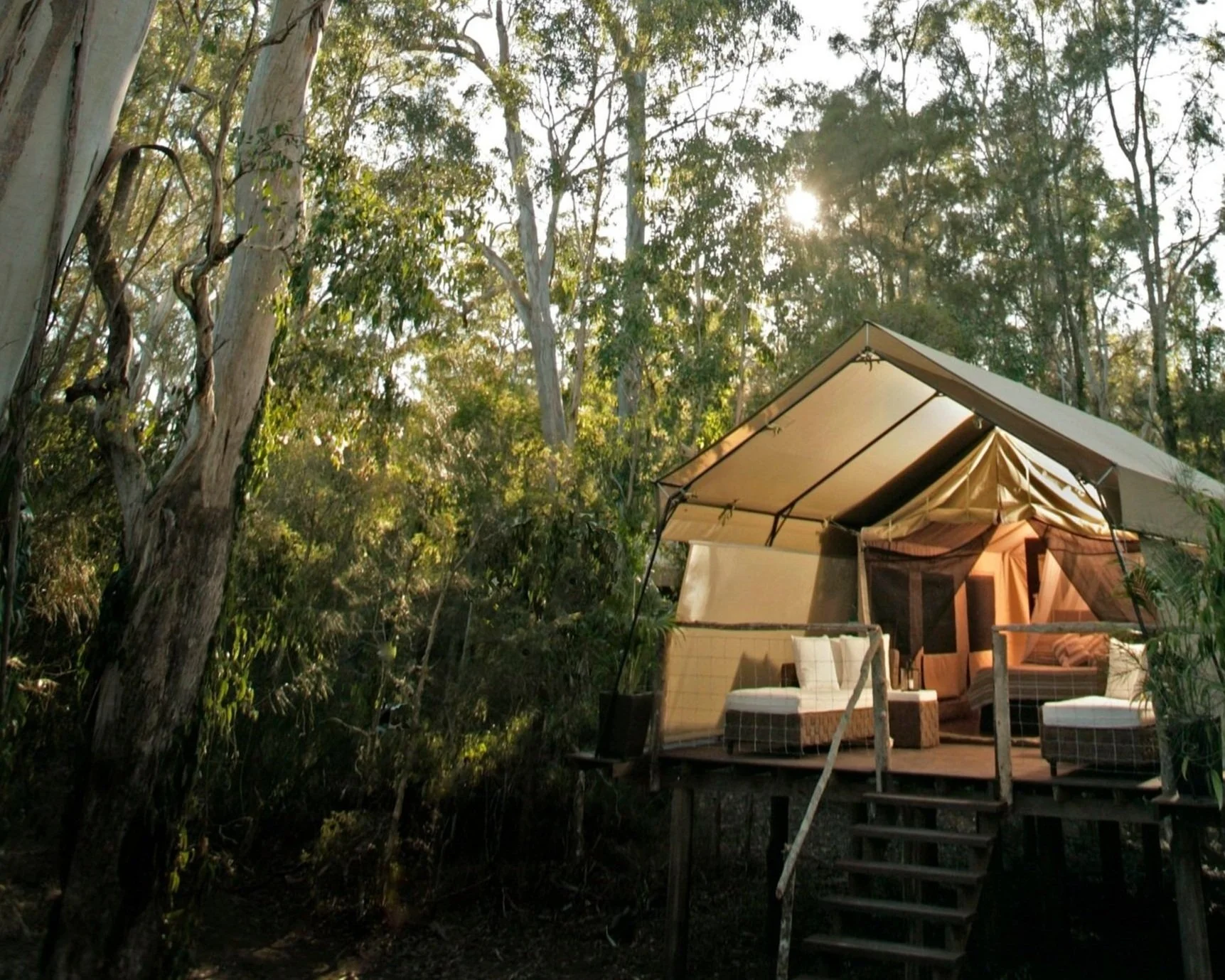 Two nights of luxury glamping accommodation with heating and deep bath at the iconic Paperbark Camp
